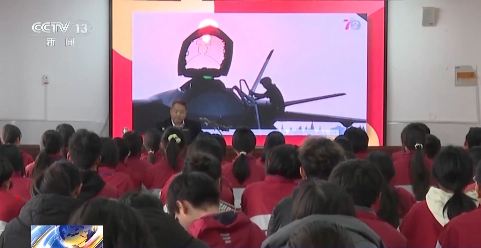 在河南郑州,国防教育课上,人民空军首任新闻发言人、中国公共关系协会军事专家申进科,深情讲述了空军歼-20飞行员陈浏、战机摄影师杨军的奋斗成才故事。